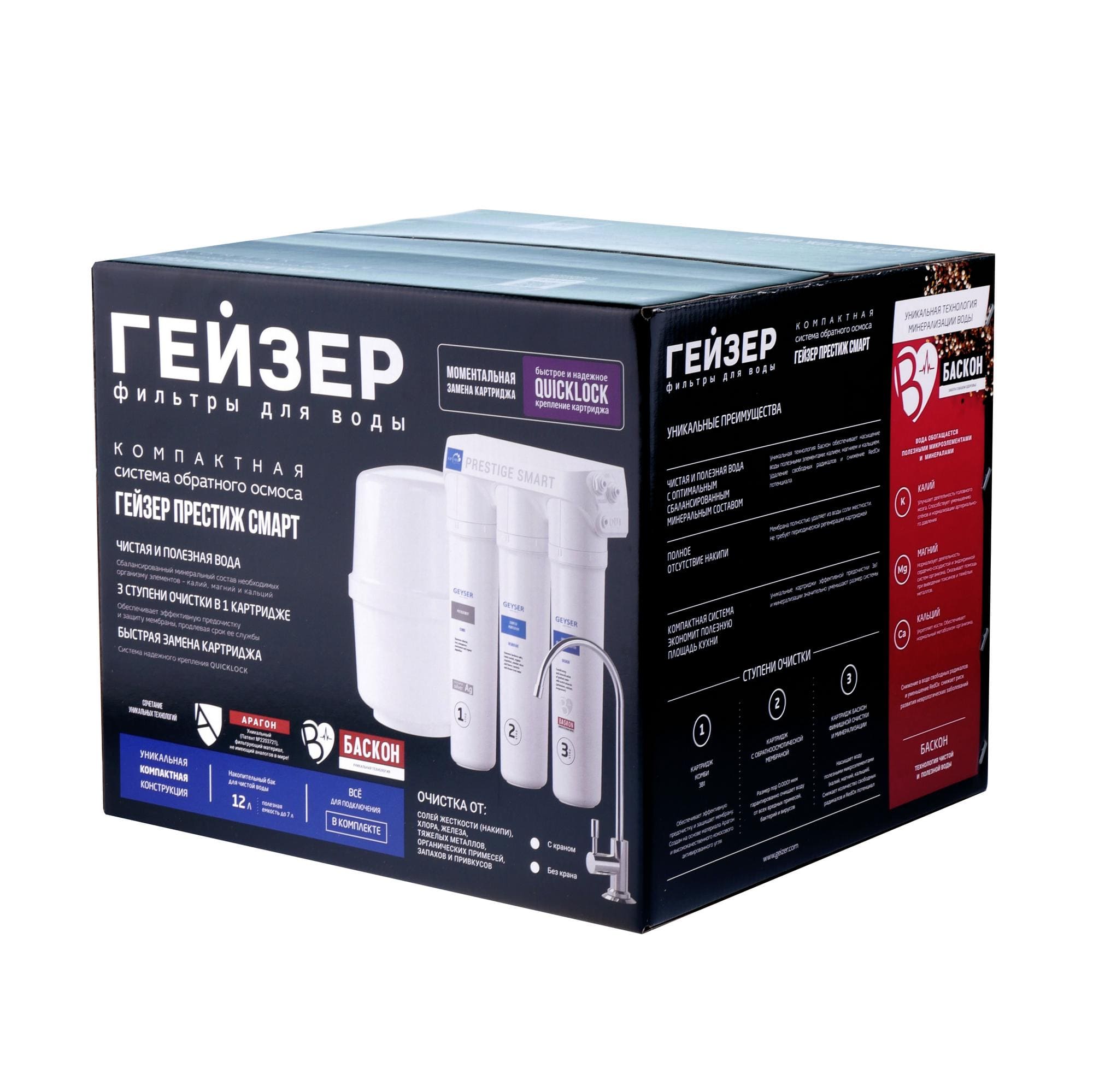 ЭТАПЫ ОЧИСТКИ ВОДЫ СИСТЕМОЙ ОБРАТНОГО ОСМОСА ГЕЙЗЕР ПРЕСТИЖ СМАРТ: