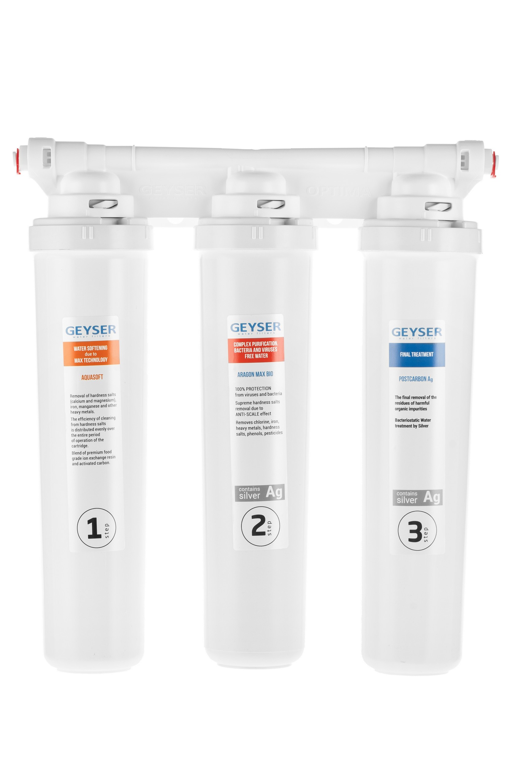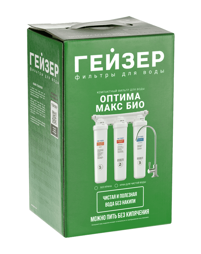 Уникальный фильтр Гейзер Оптима Макс Био специально разработан для комплексной очистки воды и предотвращения образования накипи. Фильтр сочетает в себе инновационные технологии: технологию непрерывного умягчения и технологию удаления вирусов и бактерий. Благодаря использованию новейших фильтрующих материалов — картриджа Арагон Смарт Макс Био и специальной комбинации ионообменных смол АкваСофт Смарт срабатывает эффект АнтиСкэйл, который позволяет исключить появление накипи и сохранить природный минеральный состав воды. Способность фильтра Гейзер Оптима Макс Био устранять накипь в 6 раз выше, чем у традиционных фильтров для жесткой воды! При этом фильтр не нуждается в периодическом обслуживании (регенерации). Картридж Арагон Смарт Макс Био эффективно защищает от вирусов и бактерий – делает воду абсолютно безопасной. Воду можно пить без кипячения.