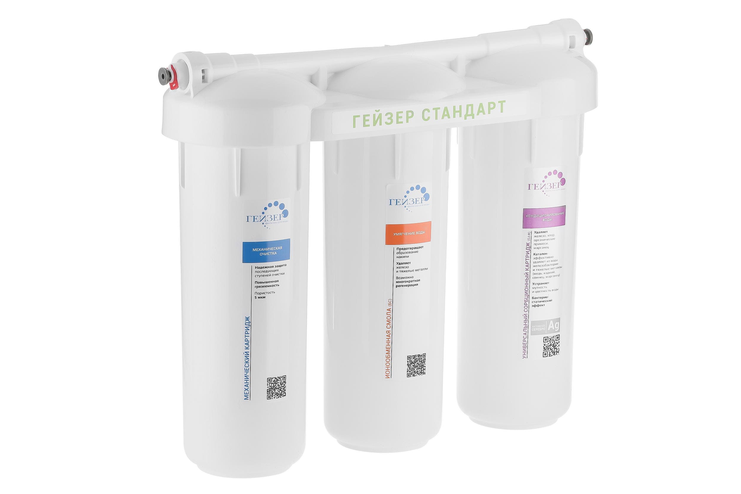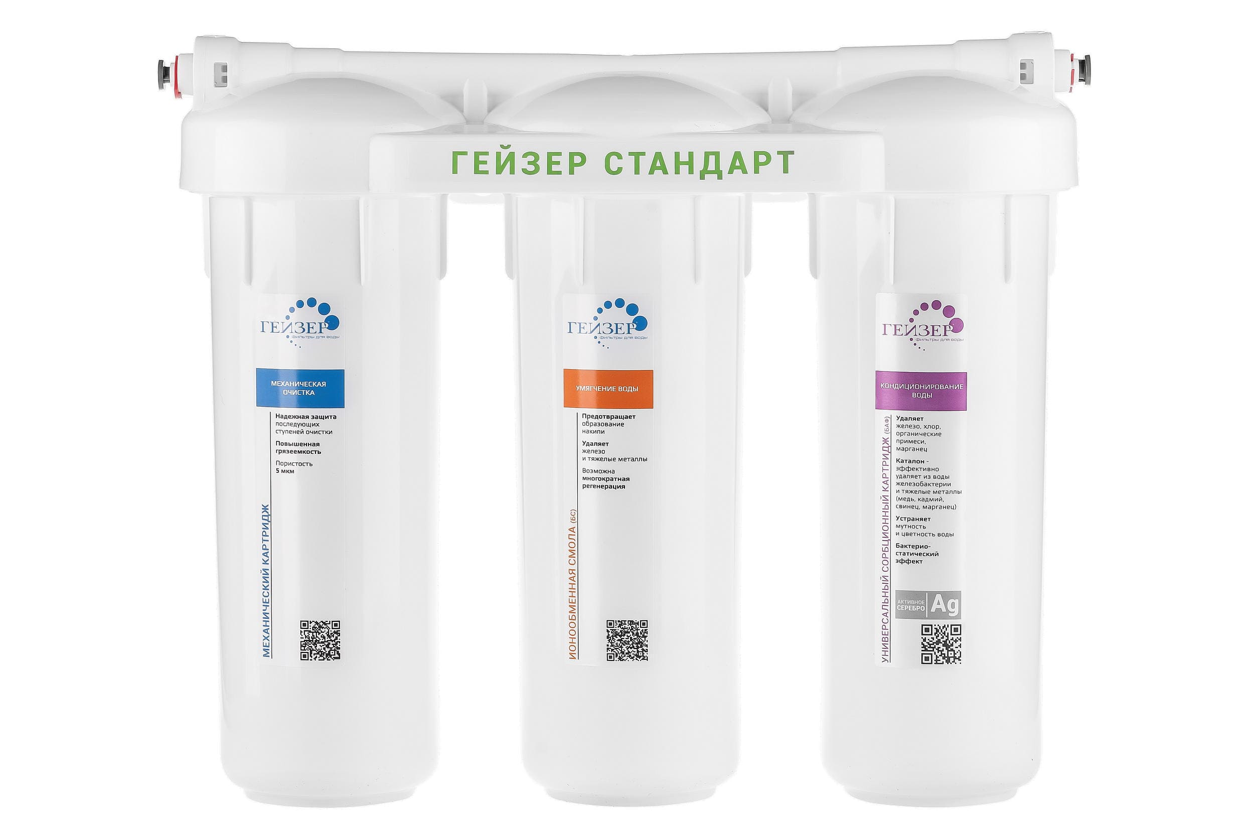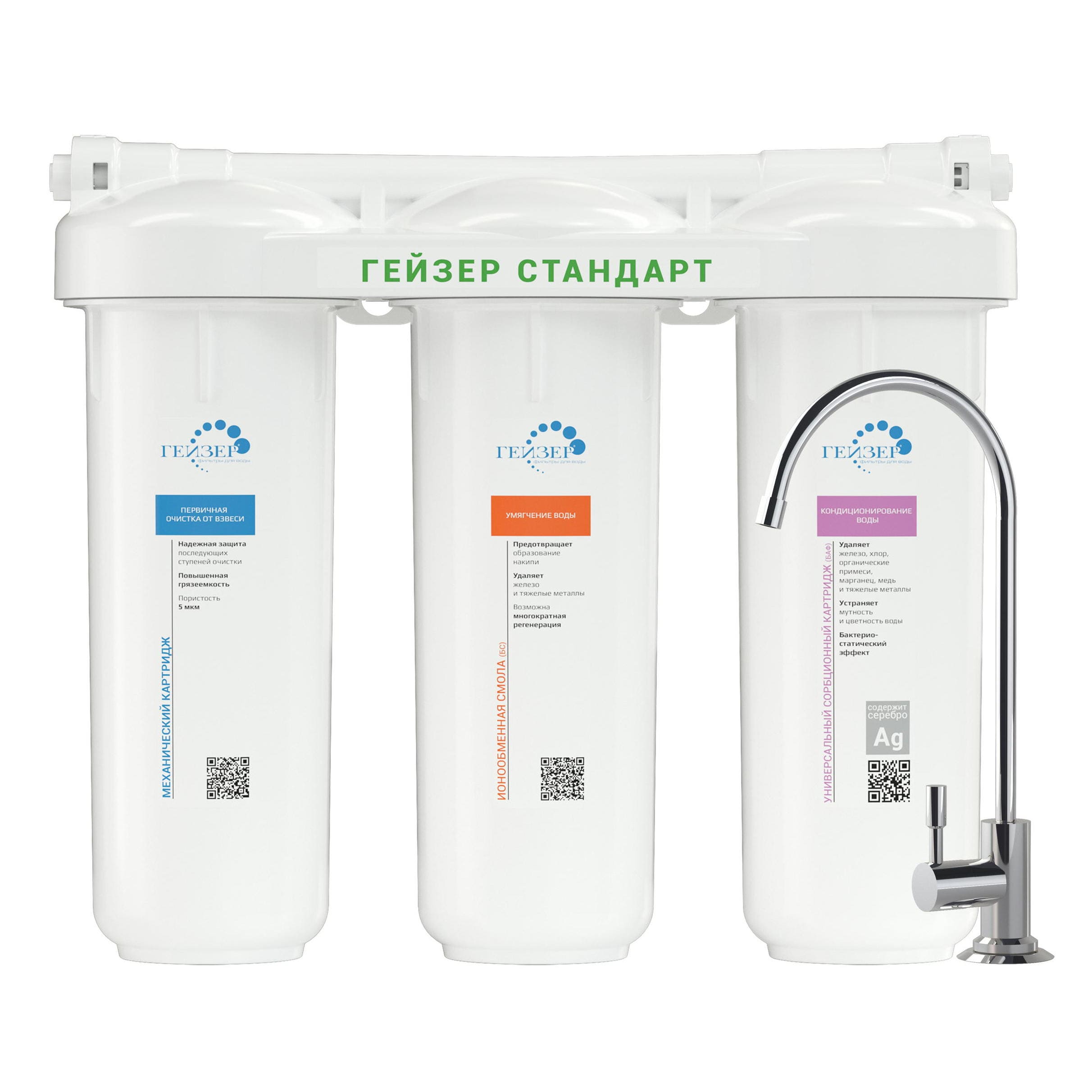 Фильтр Гейзер Стандарт для жесткой воды состоит из 3 картриджей:
