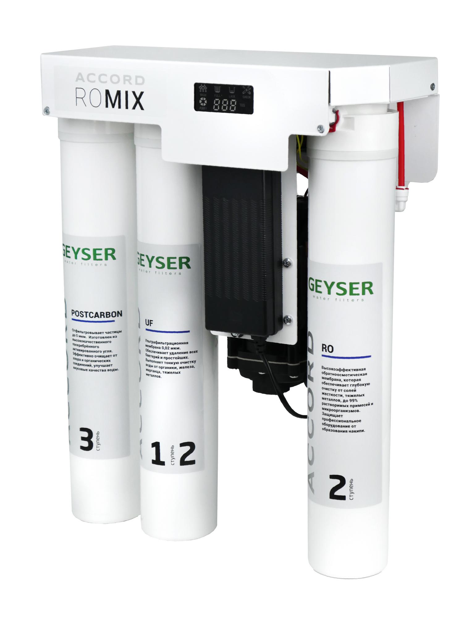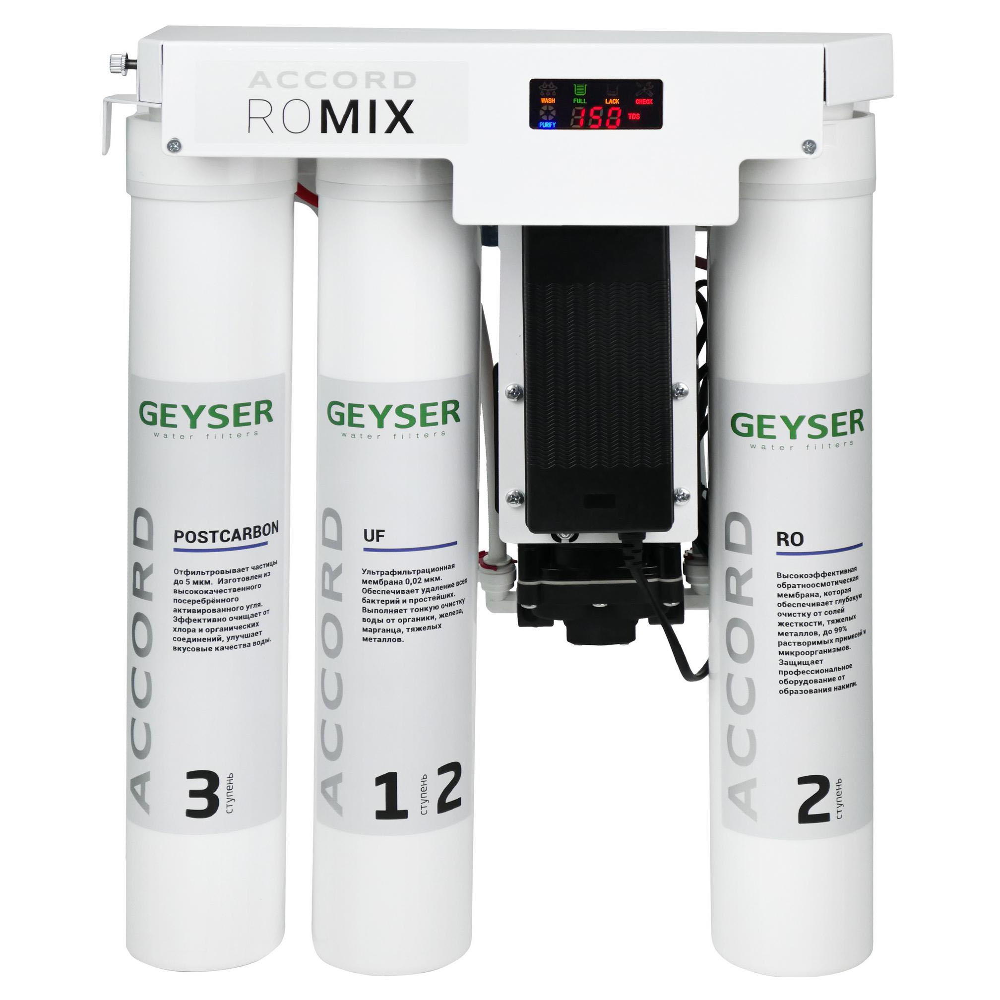 Фильтр Гейзер Accord RO Mix предназначен для получения воды высокой степени очистки и приготовления напитков и гастрономических блюд.