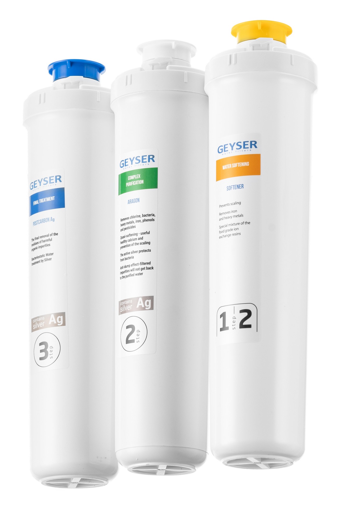 Комплект сменных быстросъемных картриджей для фильтра Гейзер Смарт для жесткой воды.