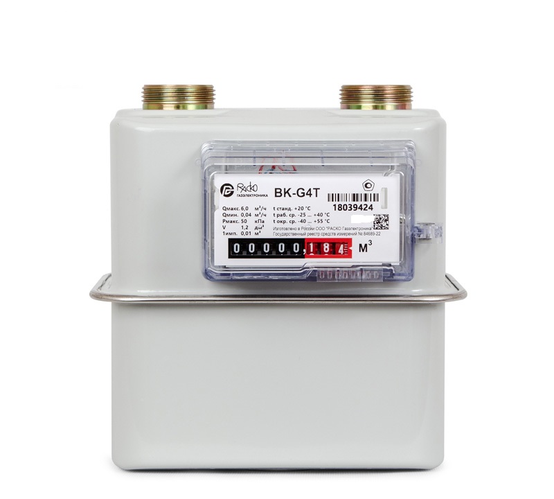 Счетчики газа ВК типоразмеров G1,6(T), G2,5(T), G4(T), G6(T) предназначены для учета объема потребляемого газа в бытовом секторе.