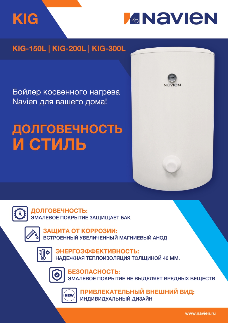 Бойлер косвенного нагрева предназначен для аккумулирования горячей воды от различных источников тепла (газовый котел, электрический котёл твердотопливный котел, котёл на биомассе, пеллетный котёл, камин с водяной рубашкой, солнечный коллектор).